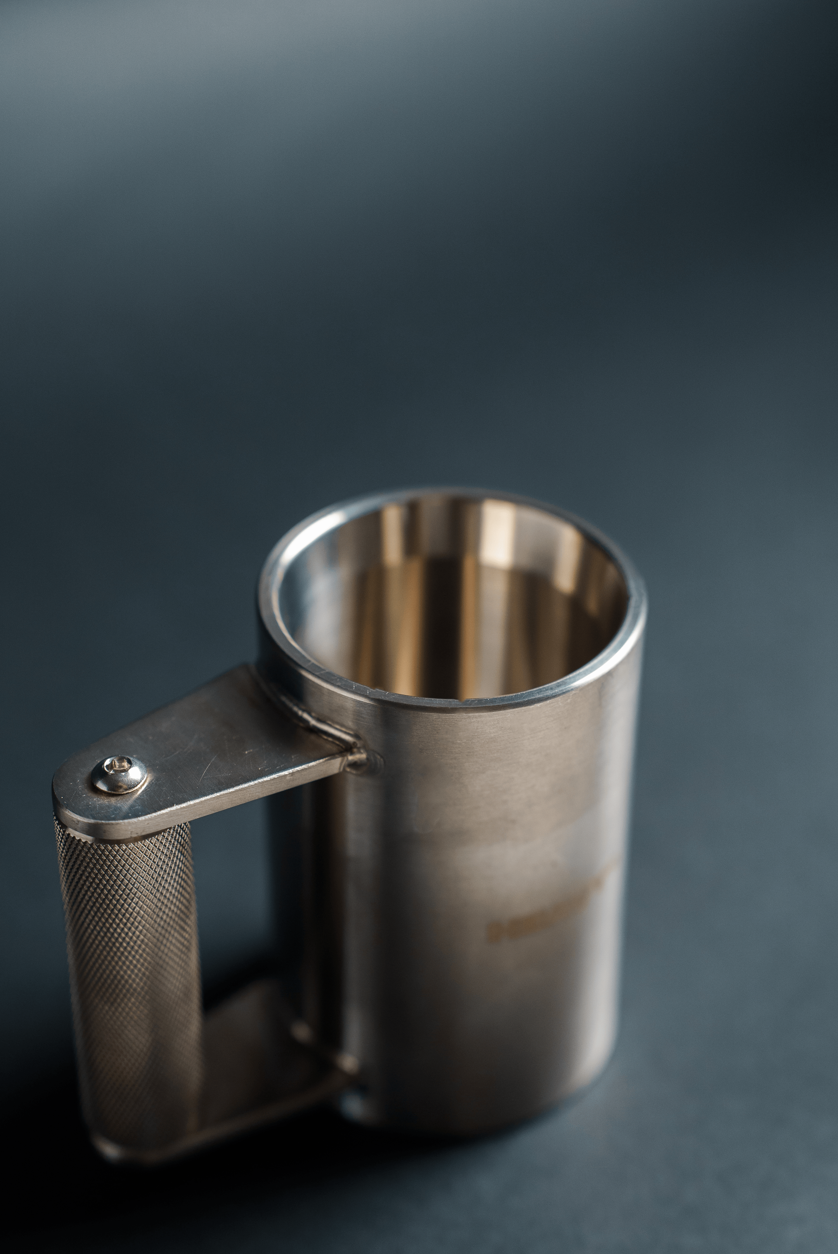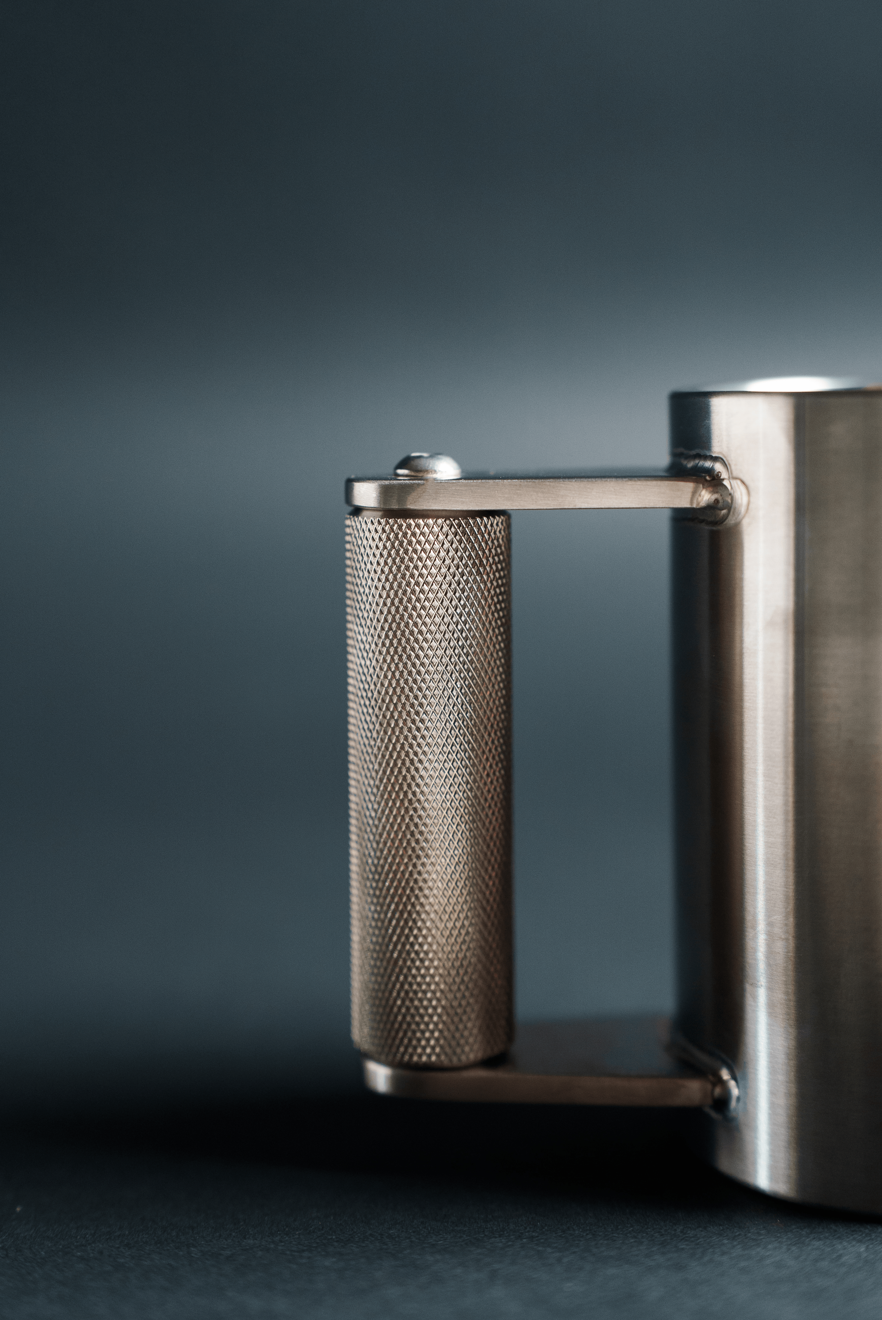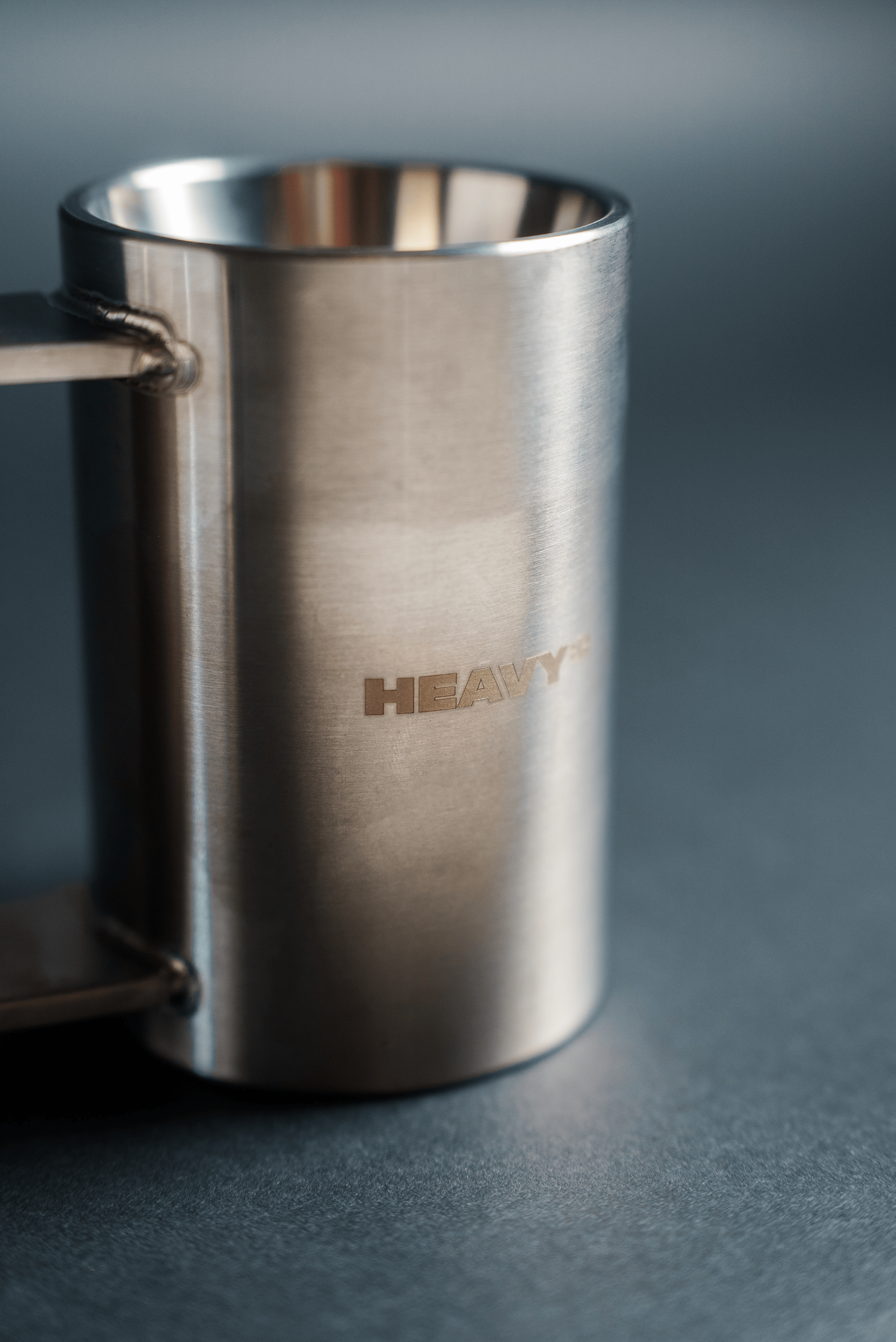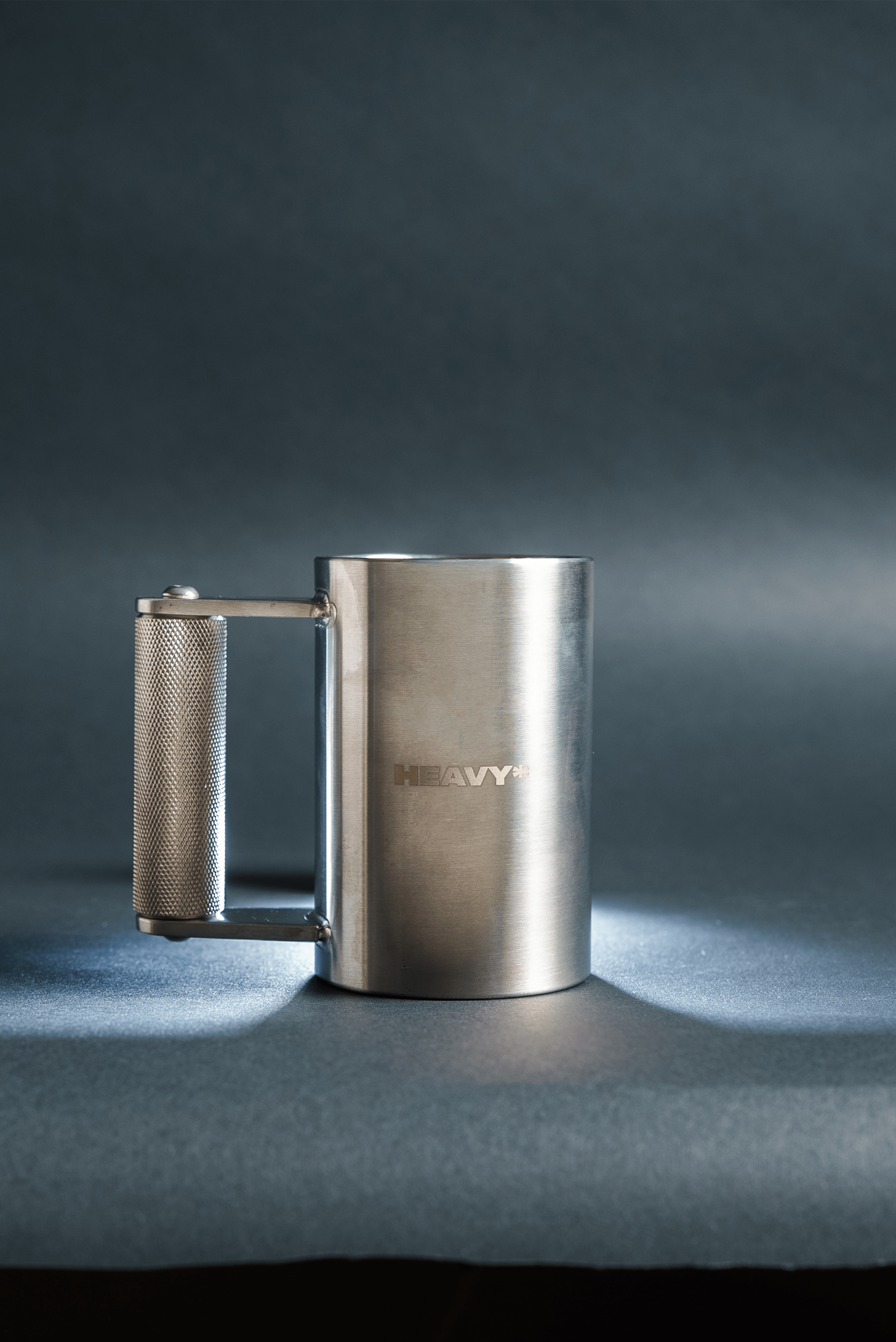 The knurled handle on The Heavy Mug is built like a barbell - gritty, grippy, and unapologetically tough.