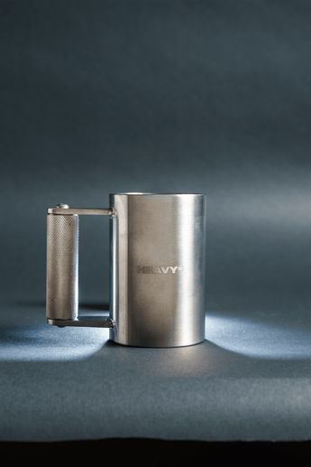 This Heavy* Mug is a 5lb stainless steel mug built for strength, endurance, and anyone who wants their coffee ritual to double as a workout all while remaining more practical then the 22lb mugs.