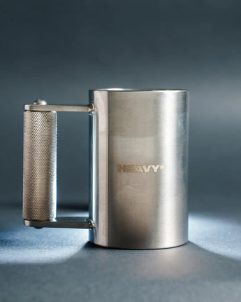The 5lb HEAVY* Mug is a stainless steel mug built for strength, endurance, and anyone who wants their coffee ritual to double as a workout.